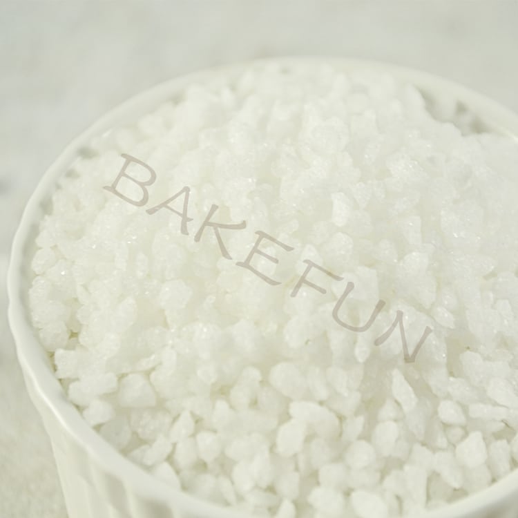 1號珍珠糖(小顆)適合外撒裝飾用,4號珍珠糖(大顆)可與麵糰攪拌進烤箱烘烤。
