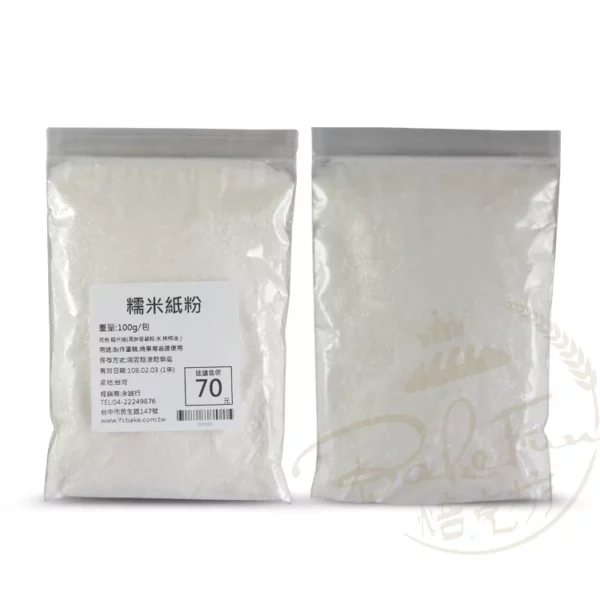 糯米紙粉是一種方便的食材,通常用於蛋糕、糖果等甜點的裝飾。它由糯米紙製成,成分包括馬鈴薯澱粉、水和棕櫚油。這種粉末可以輕鬆地應用於各種甜點上,為它們增添獨特的質感和裝飾效果。無論您是專業的糕點師還是家庭廚師,都可以使用這種糯米紙粉來提升您的烘焙創作。請確保將其存放在陰涼乾燥的地方以保持其質量,並在有效日期內使用。台灣製造,品質有保證。