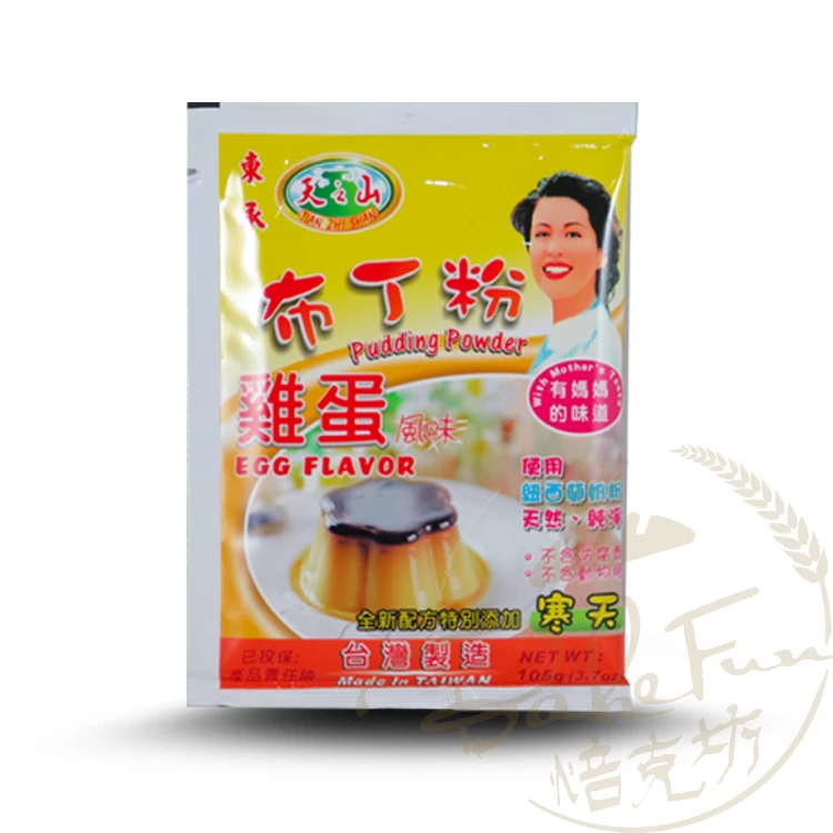 這款東承天之山雞蛋布丁粉以台灣原產地的海藻抽出物為主要成分,添加了砂糖、奶粉和寒天粉,以及蛋黃粉和食用色素(黃色4號)等食品添加物。每包105克的份量,方便使用且容易儲存。