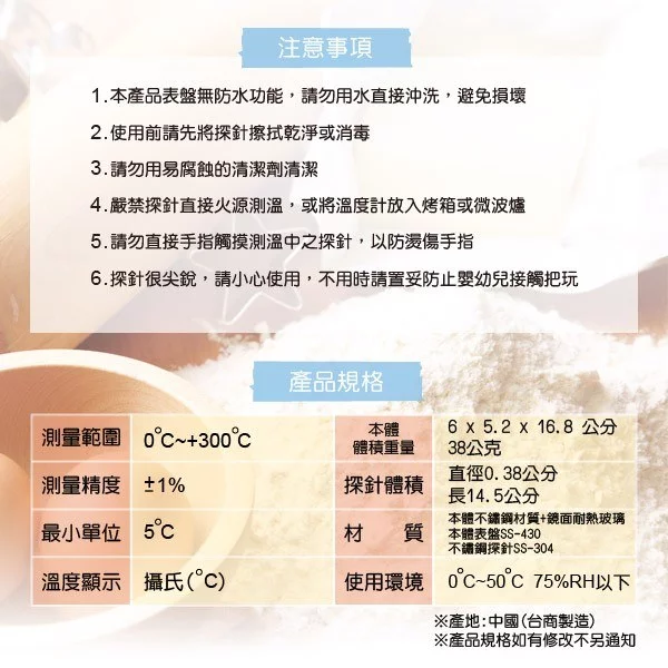 300度C多功能不銹鋼溫度計/量針14.5cm