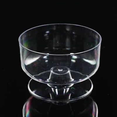 PS材質,質輕透明,硬度好。玻璃般的透明,可清楚呈現杯中的甜點。造型的設計,增加甜點的獨特性。多數用於奶酪、果凍、水果和其他甜點。