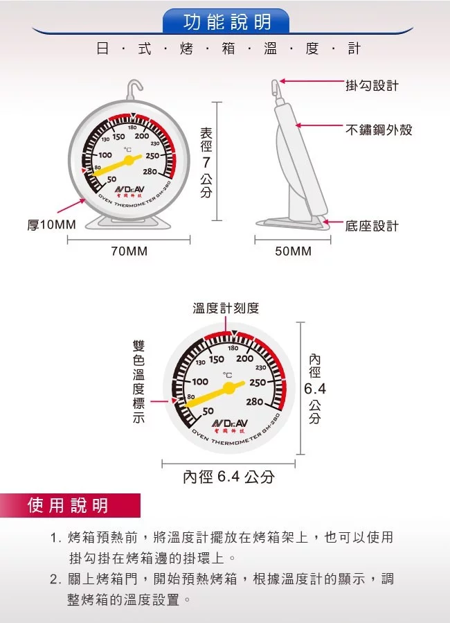 這款日式烤箱溫度計是烤箱愛好者和專業烘焙師的理想工具,確保烘焙過程中的溫度精確控制。