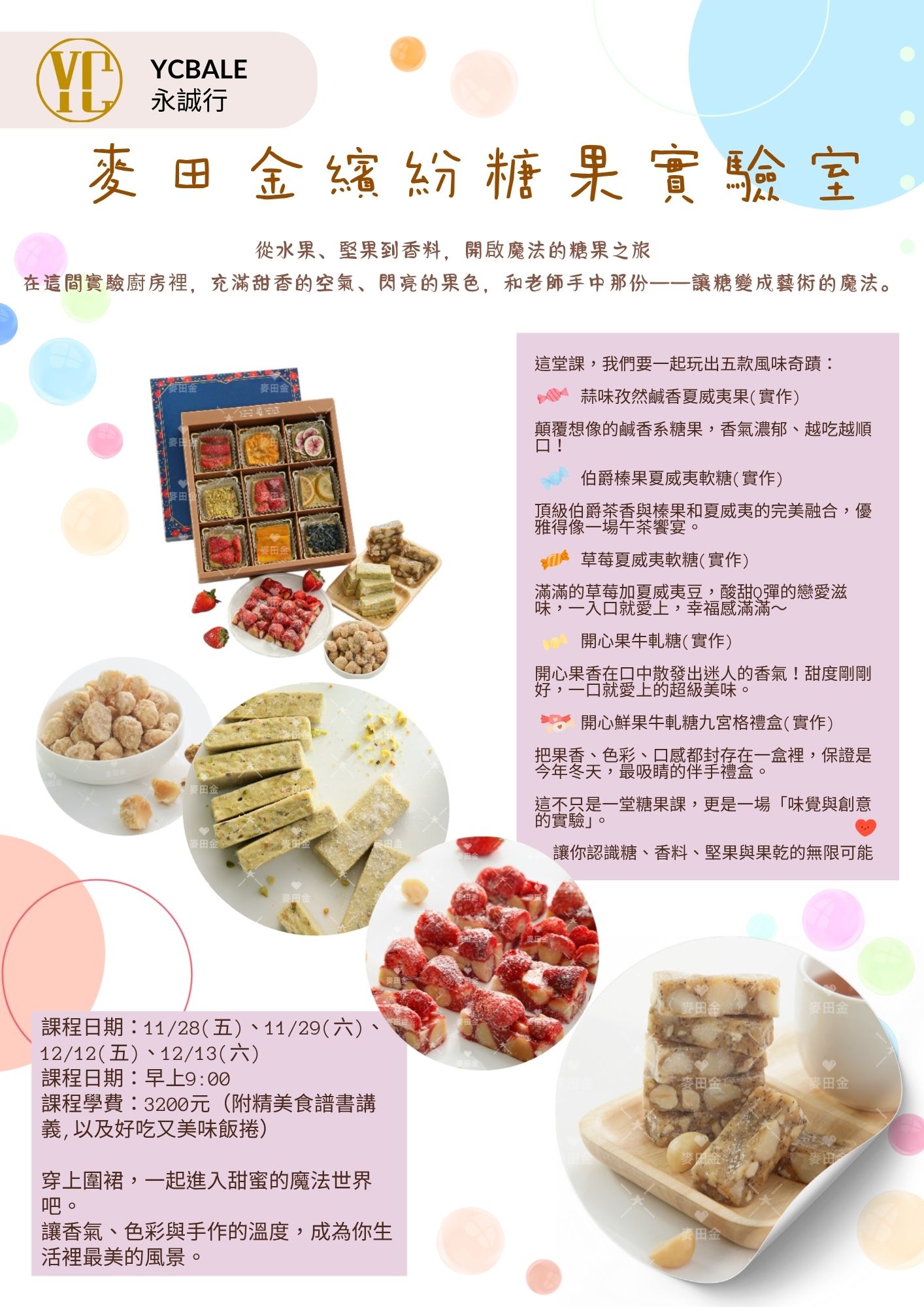 - 實作課可能需要特殊容器(帶成品回家)和工具,根據課程安排會有另行公告。
