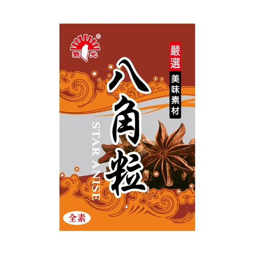 商品介紹: 新光牌精選之八角粒不但大朵、芳香且具有甜味,經古法烘焙後會使香氣更加濃郁飽滿。八角粉常用於中式料理,不僅可以為佳餚增添香氣,還可去腥。特別適合用於燉滷食材或調味家禽類肉品。